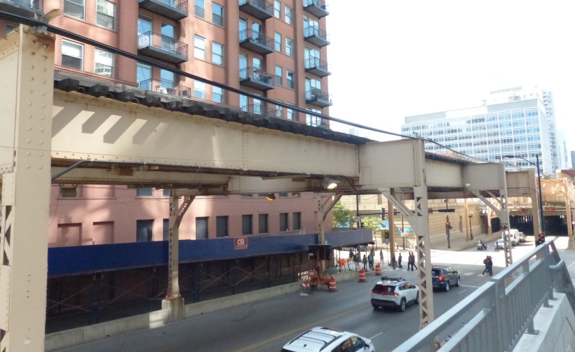 This is the east train deck approach span over Wacker Drive and Lake Street. Warren Truss divided. Photo date: 11 July 2020.