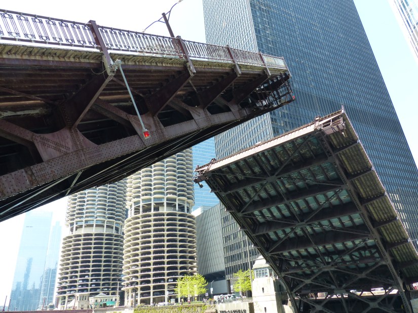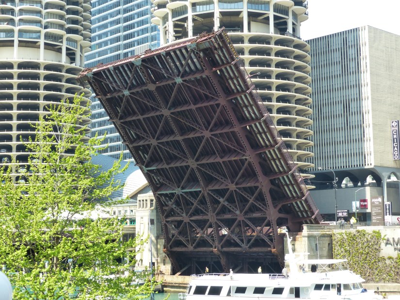 Chicago’s First Bridge Lift of Spring 2026 Makes Photography a Fun Challenge. Angles of Bridge Structures, Telephotos, and the Urban Environment. Frame the Works- Public Works, that is.
