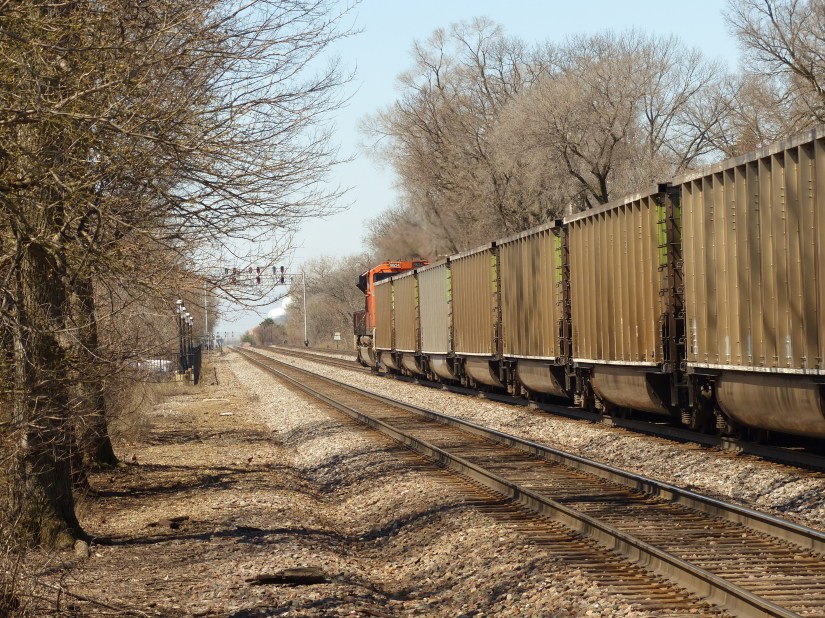 • Lead unit on westbound open‑hopper consist