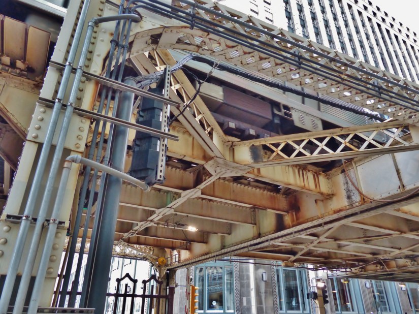 These sections of the north train deck approach span that link the Brown Line station at the Merchandise Mart to the clear span’s train deck are particularly technically complex.