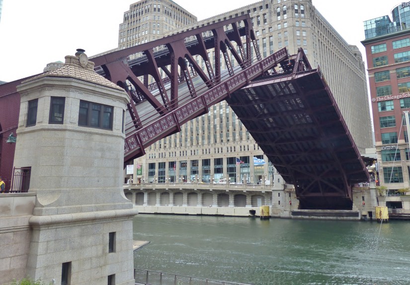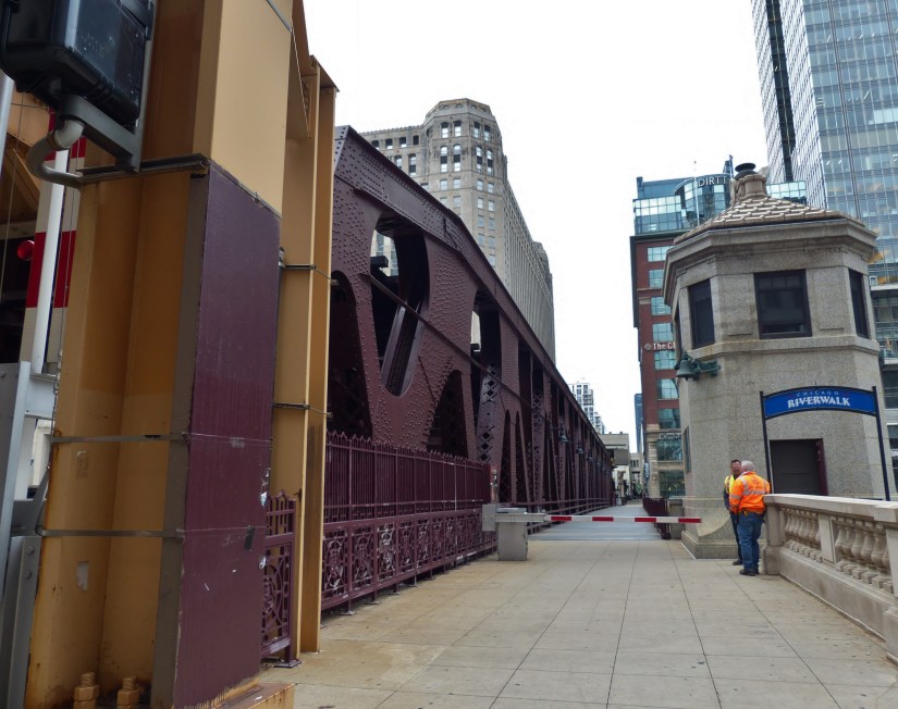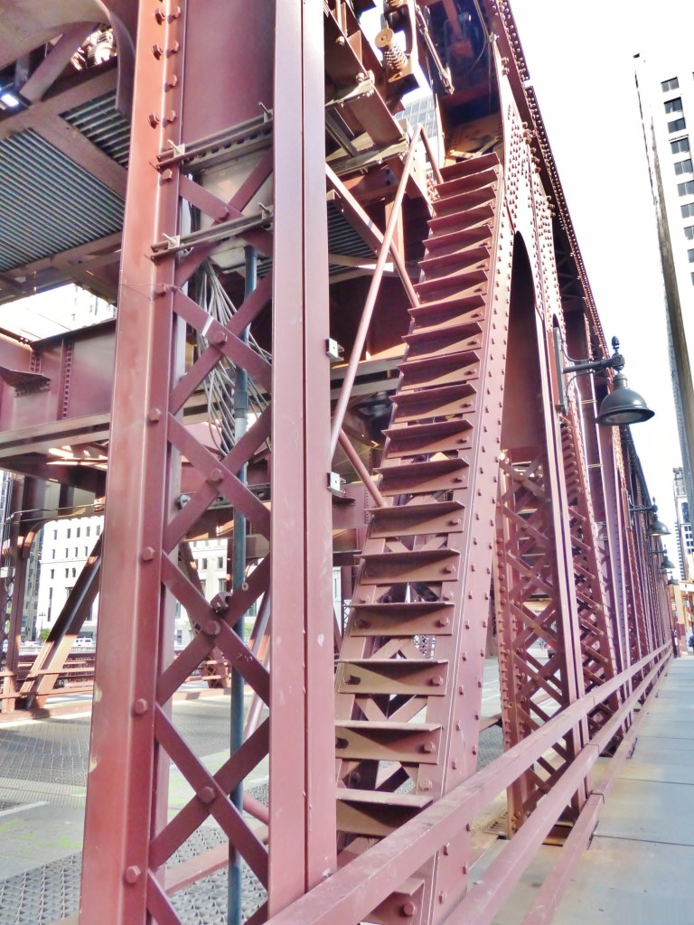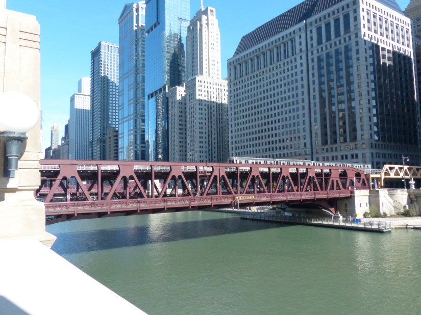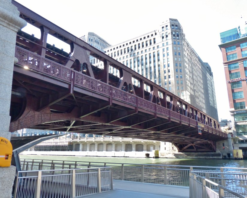 The original Wells Street Bridge opened in 1922. In 2012 – 2013 the bridge was rebuilt. It is one of two bridges in downtown Chicago that carries Chicago Transit Authority trains on its upper deck, the other being Lake Street Bridge across the river’s south branch.