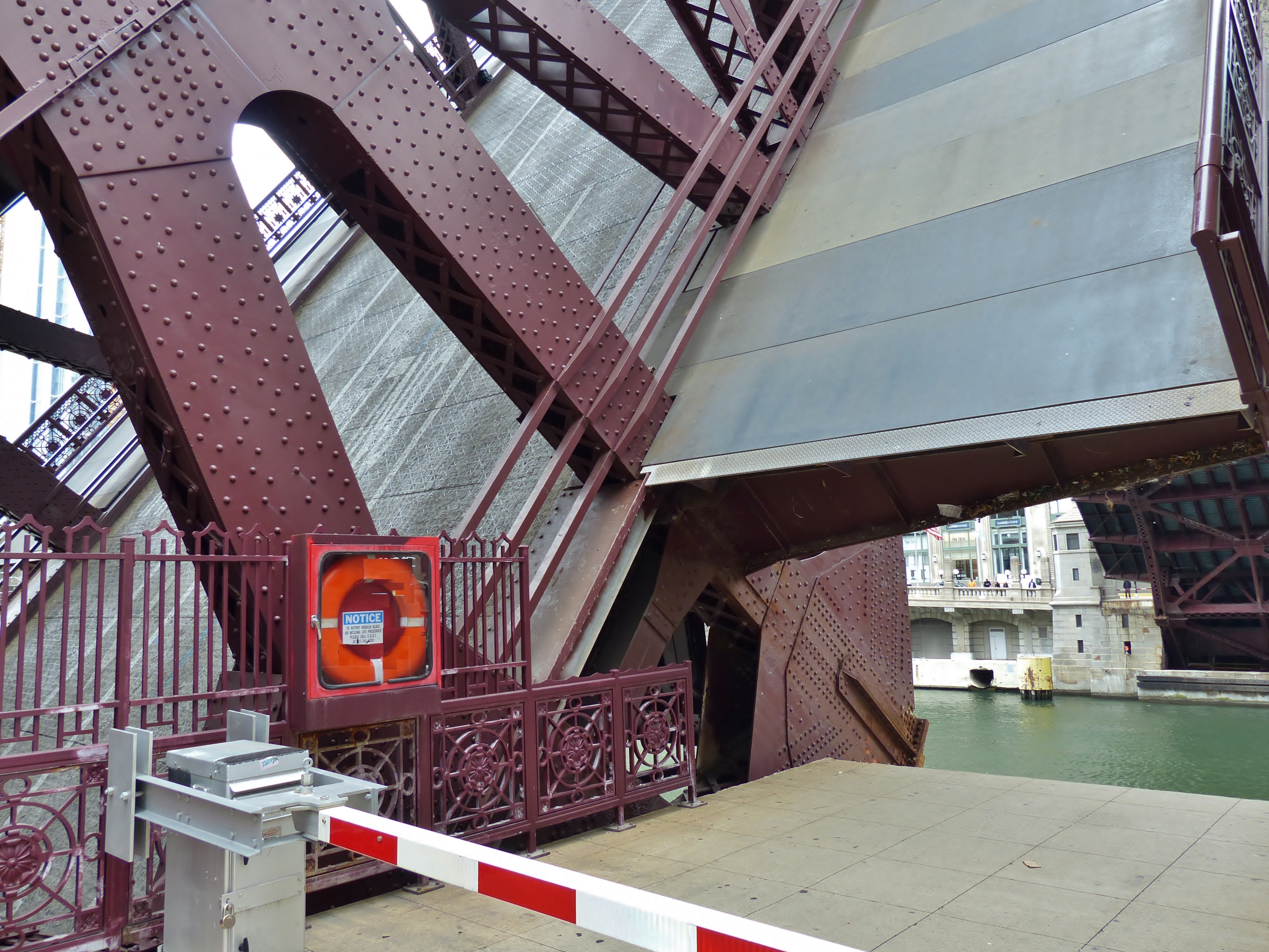 The challenge was answered starting around 1900 with the building of trunnion bascule bridges, defined as bascule (French for “seesaw” or balance scale), and the trunnion, which is the large axle that raises the span. The Chicago-style bascule bridge is a refinement by Joseph Strauss of the fixed-trunnion. Design variations noted in the city include the single-deck pony truss and the style discussed in this article, the double-deck, double-leaf, Warren through truss.