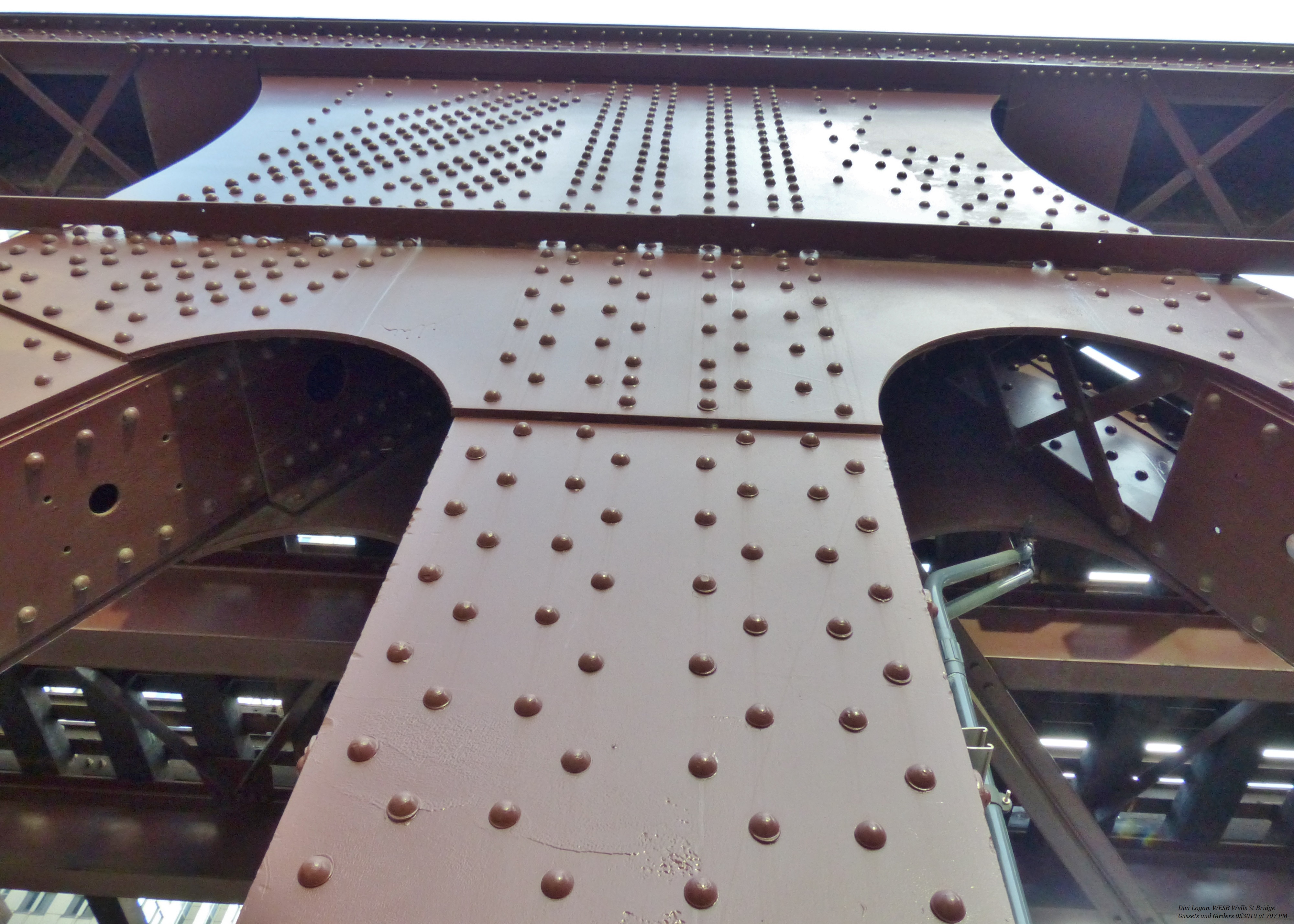 Batten plates on the Wells Street Bridge—and similar riveted truss structures—play a subtle but essential role in maintaining the integrity of built-up members. They are used to tie together individual elements (typically angles or channels) that form a built-up compression member.